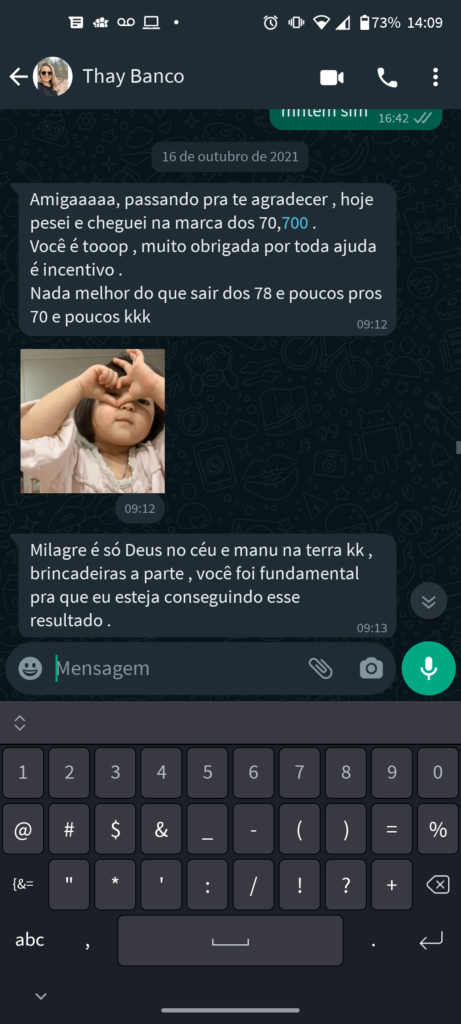 Durante o tratamento eliminamos 14KG, e hoje a Cris, é uma mulher completamente diferente, mais feliz e com mais saúde.